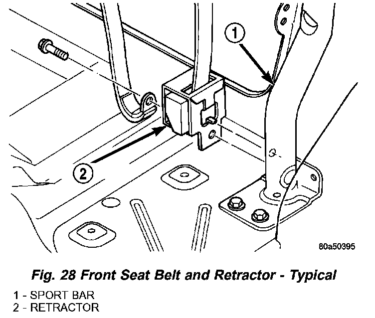Fig. 28 Front Seat Belt And Retractor - Typical: