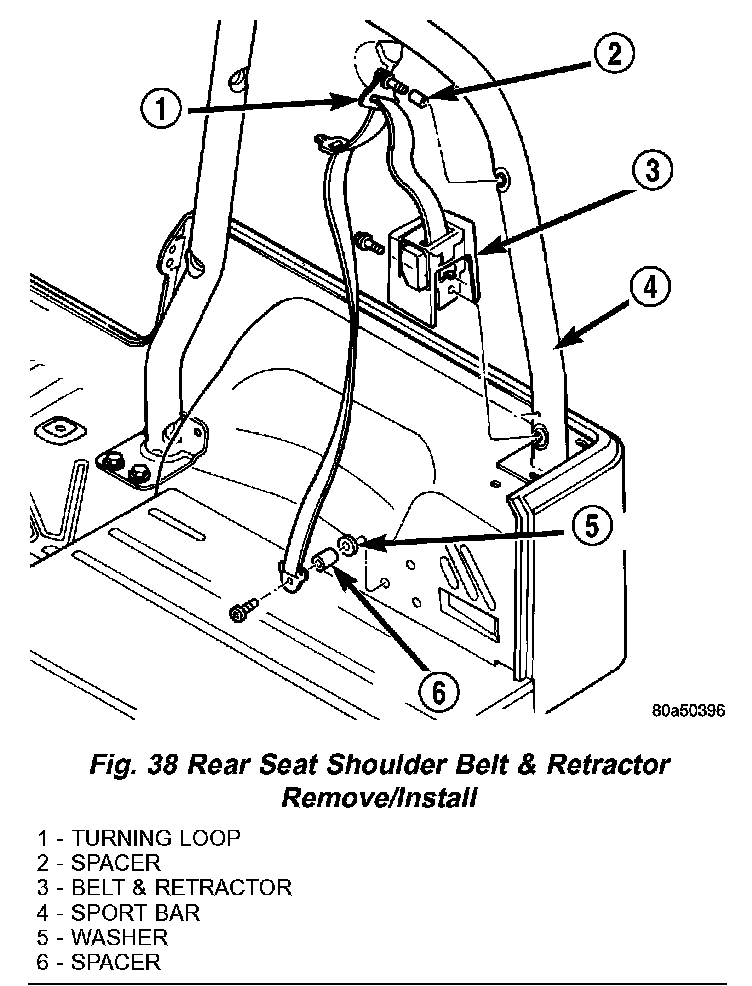 Fig. 38 Rear Seat Shoulder Belt & Retractor Remove/Install: