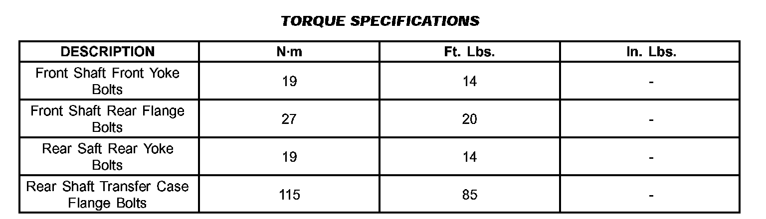 PROPELLER SHAFT TIGHTENING SPECIFICATIONS: