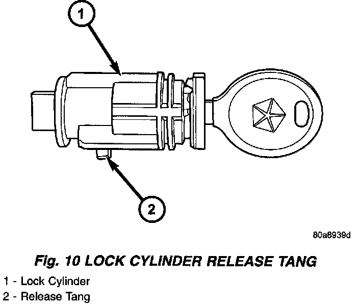 3. A release tang is located on bottom of key cylinder.