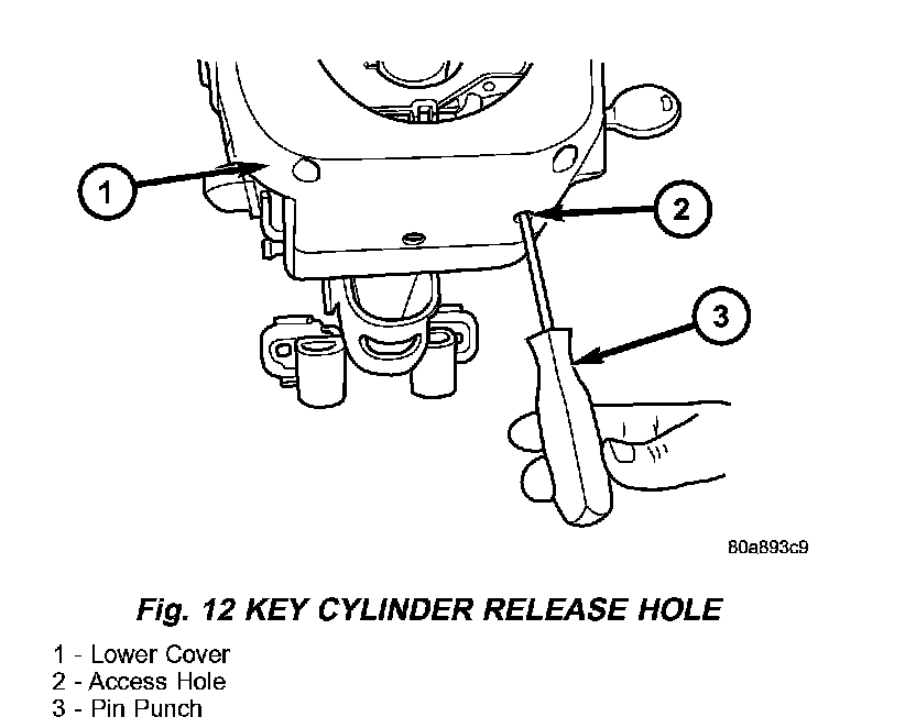 5. Push the pin punch up while pulling key cylinder from steering column.