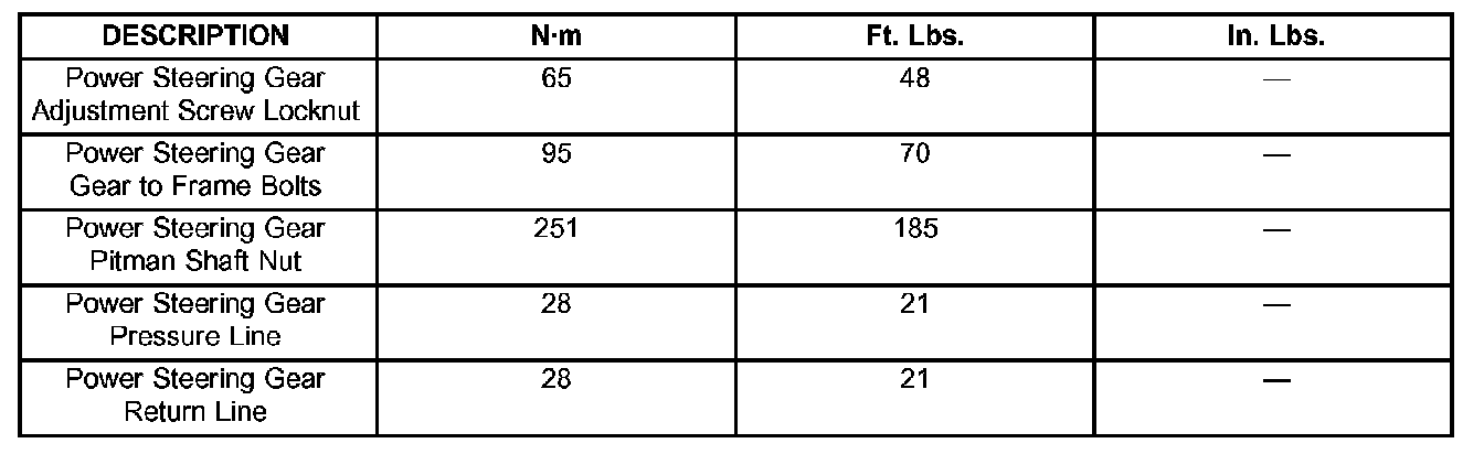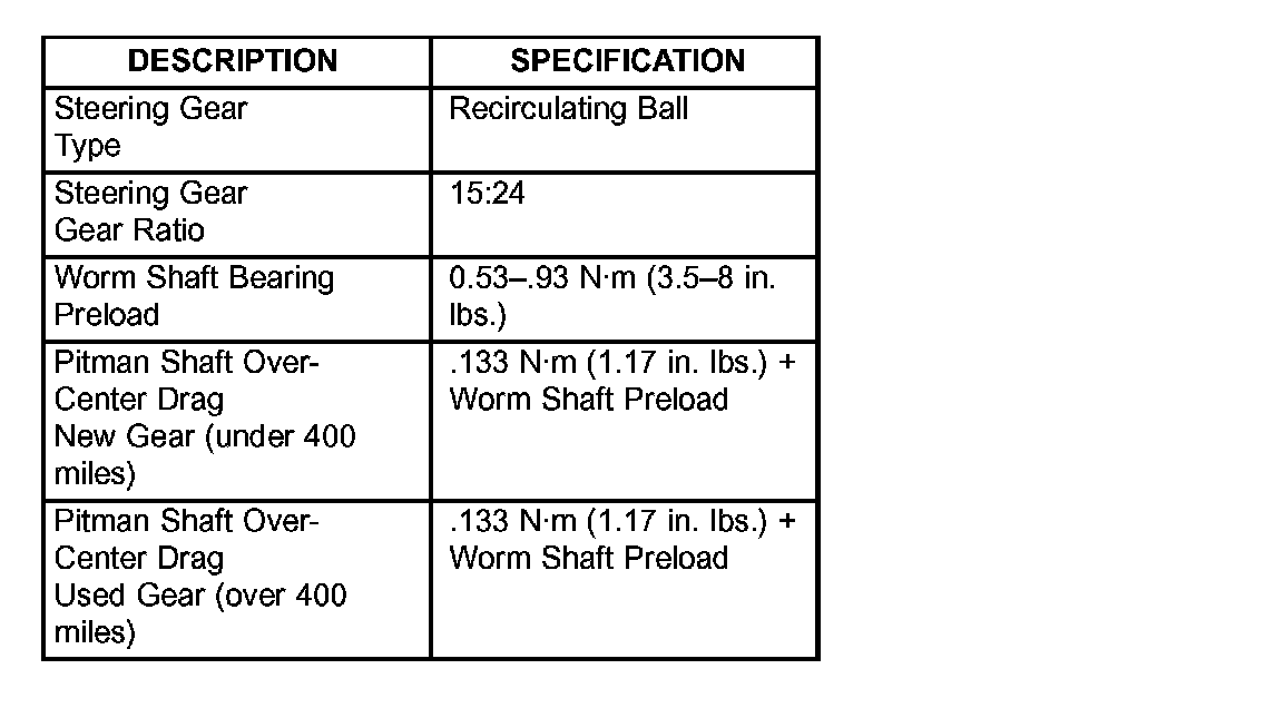 Steering Gear: Specifications