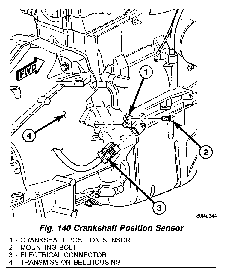 15. On 4.0L engine equipped vehicles, install the crankshaft position sensor (Fig. 140).