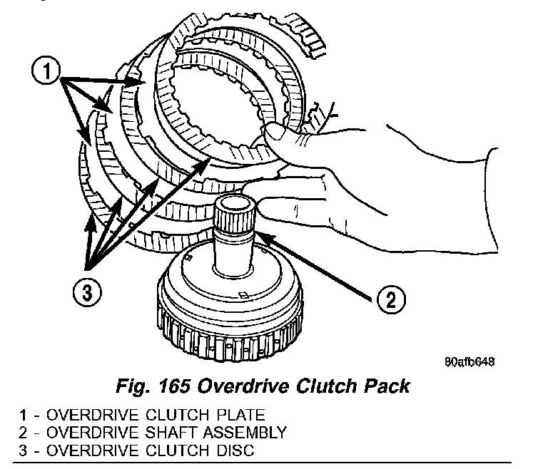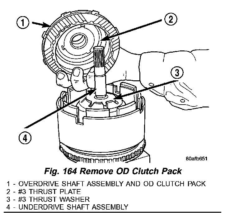 10. Remove OD shaft/hub and OD clutch pack (1) (Fig. 164).