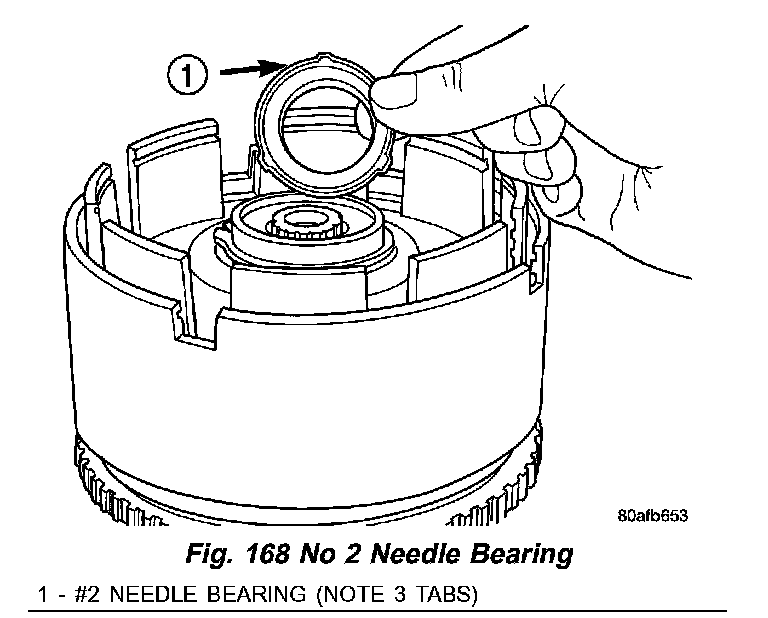 14. Remove the number 2 needle bearing (1) (Fig. 168).