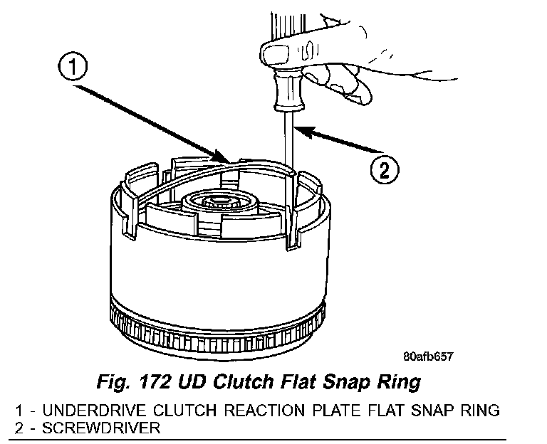 18. Remove the UD clutch flat snap ring (1) (Fig. 172).