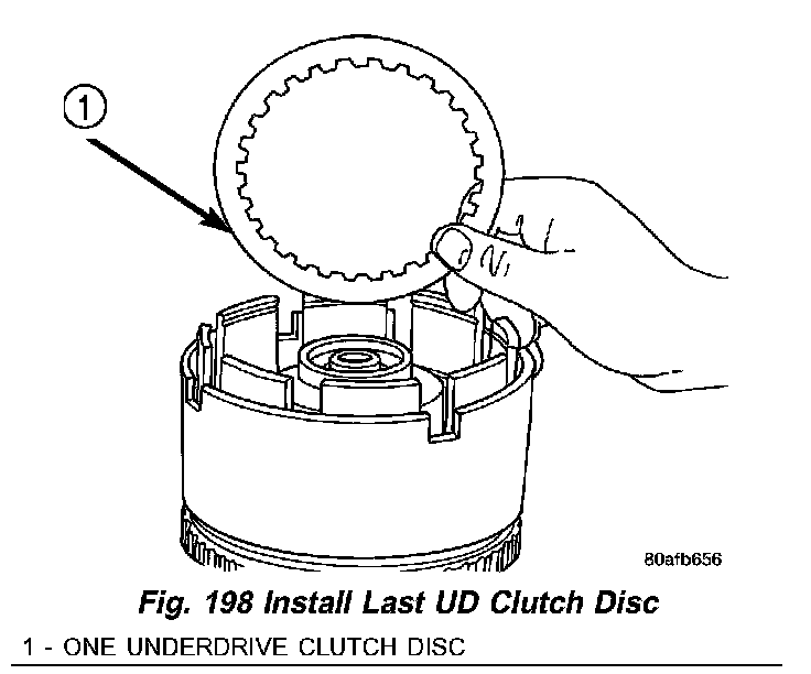 14. Install the last UD clutch disc (1) (Fig. 198).