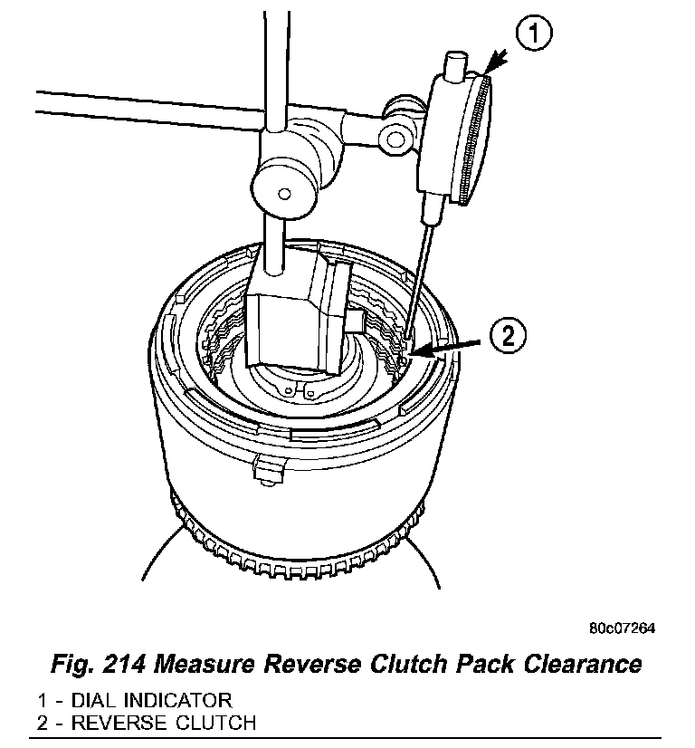 Fig. 214 Measure Reverse Clutch Pack Clearance: