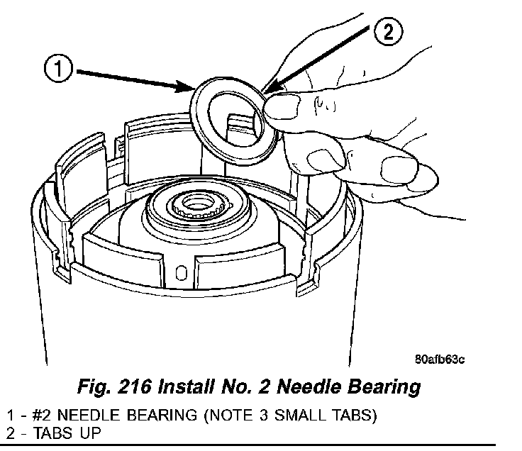 40. Install the number 2 needle bearing (1) (Fig. 216).