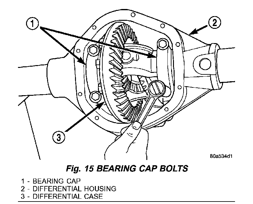 16. Install differential case and dummy bearings D-345 in the housing (without shims), install bearing caps and tighten bolts snug.