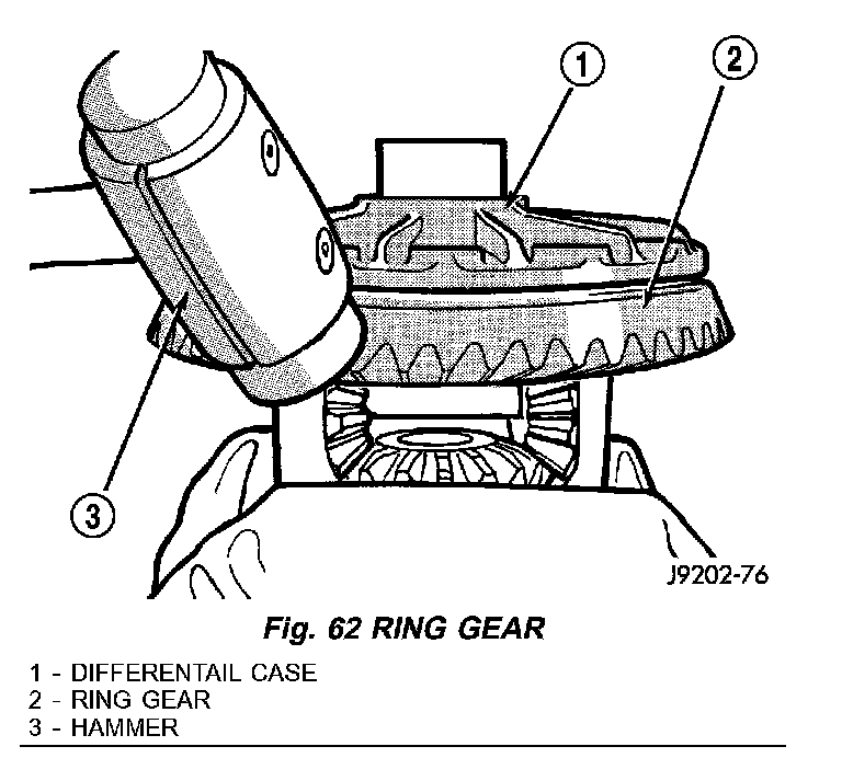 4. Drive ring gear off the differential case with a dead-blow hammer (Fig. 62).
