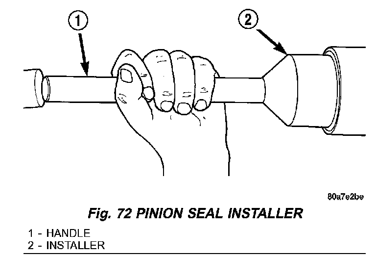 4. Apply a light coating of gear lubricant on the lip of pinion seal and install seal with an appropriate installer (Fig. 72).