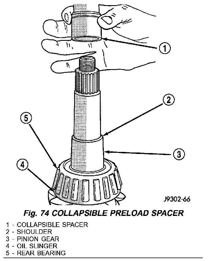 6. Install new collapsible spacer on pinion shaft and install pinion into the housing (Fig. 74).