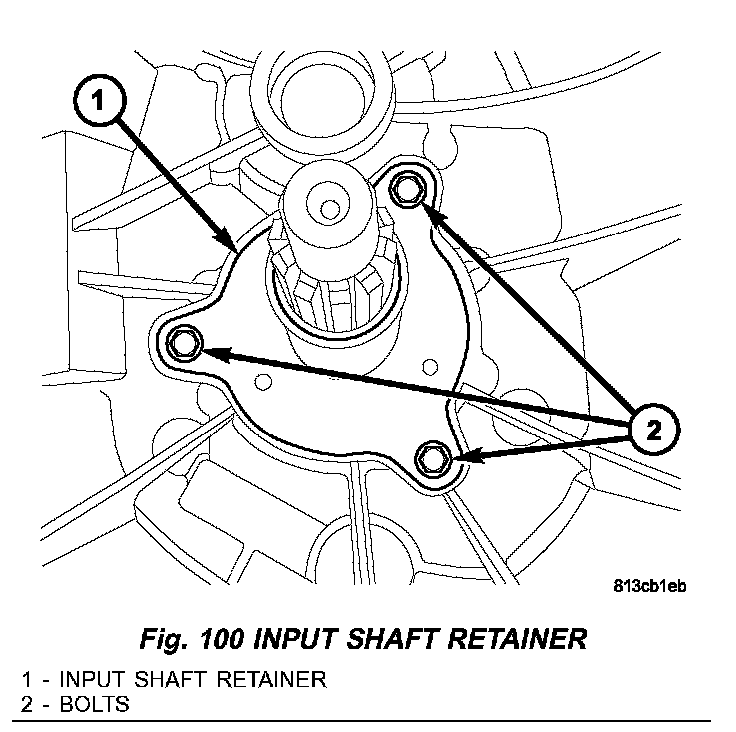 4. Install input shaft retainer (1) (Fig. 100) and tighten bolts (2) to 9 Nm (80 inch lbs.).