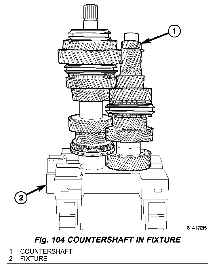 2. Install countershaft (1) onto Build Fixture 9633 (2) (Fig. 104).