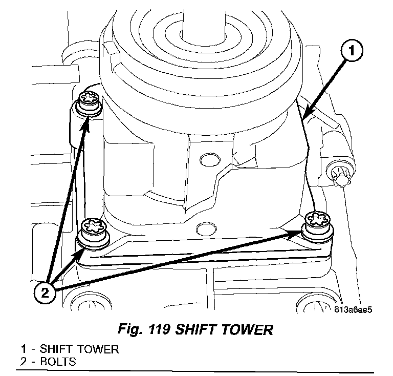 21. Install shift tower (1) (Fig. 119) and tighten bolts (2) to 14 Nm (10 ft. lbs.).