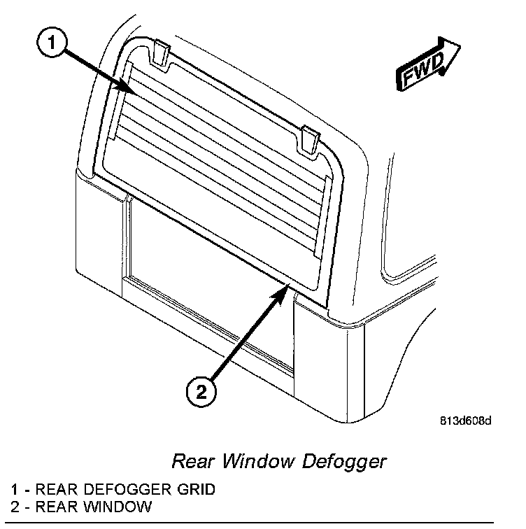 CAUTION: Grid lines can be damaged or scraped off with sharp instruments. Care should be taken in cleaning glass or removing foreign materials, decals or stickers. Normal glass cleaning solvents or hot water used with rags or toweling is recommended.Rear Window Defogger:
