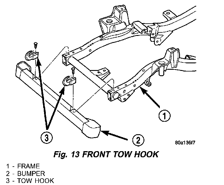 1. Remove the torx bolts that attach the tow hook to the bumper (Fig. 13).