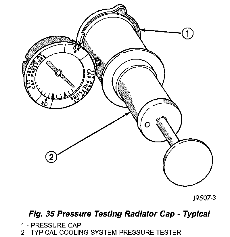 DIAGNOSIS AND TESTING - RADIATOR CAPRemove cap from radiator. Be sure that sealing surfaces are clean. Moisten rubber gasket with water and install cap on pressure tester 7700 or an equivalent.