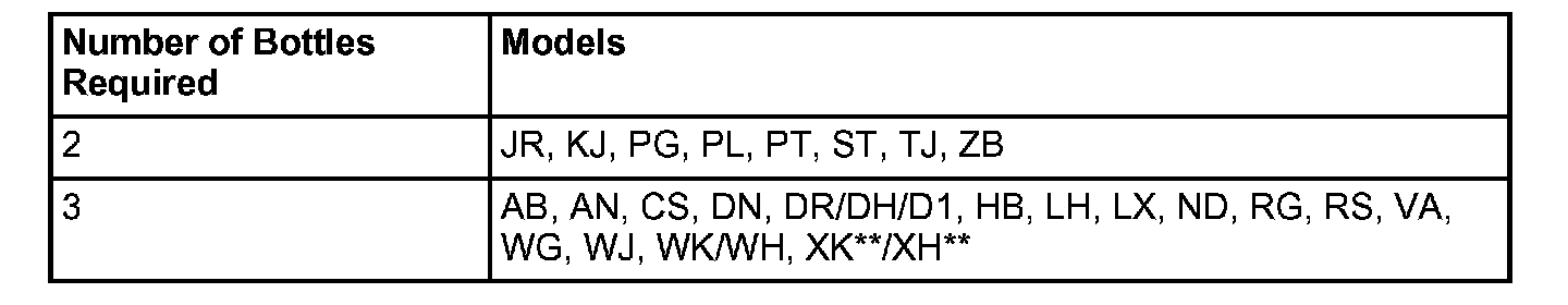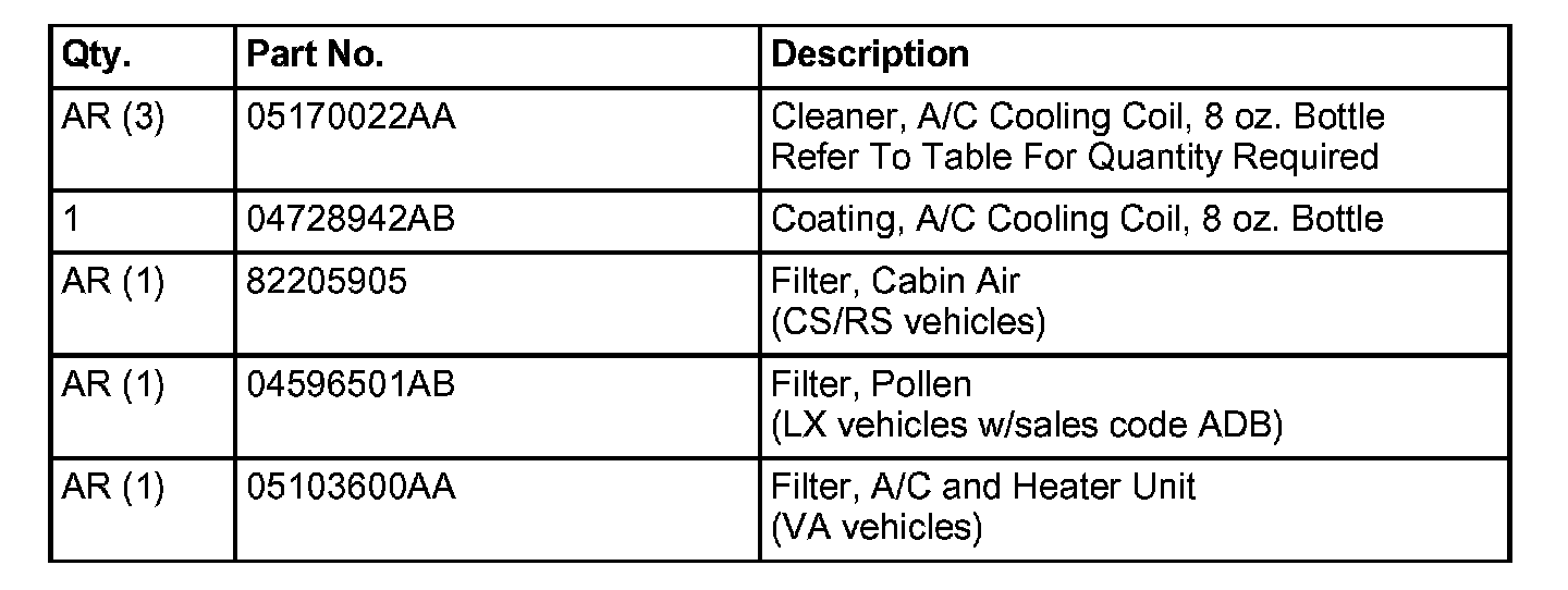 A/C COOLING COIL CLEANER REQUIREMENTS BY VEHICLE MODEL