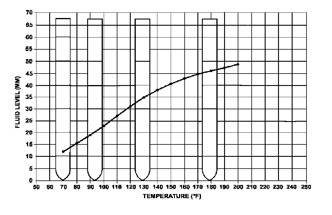 c) Using the 42 RLE Fluid Temperature Chart, find the transmission temperature vertical line matching the temperature value on the StarSCAN tool. Move up the vertical temperature line until you arrive at your dipstick reading value.