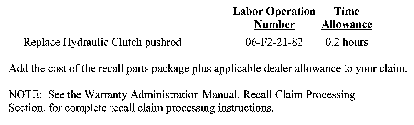 Safety Recall F22 - Clutch Pedal Pushrod