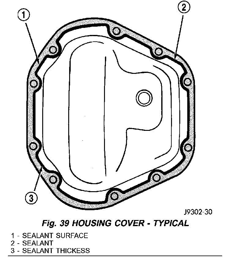 1. Apply a 6.35mm (1/4 inch) bead of Mopar Silicone Rubber Sealant or equivalent to the housing cover (Fig. 39).