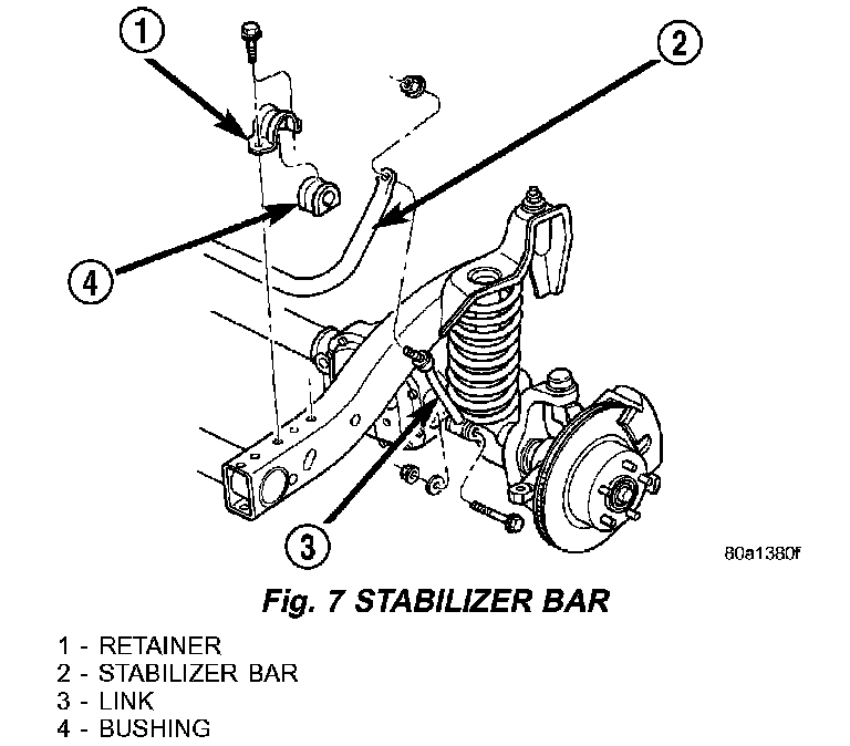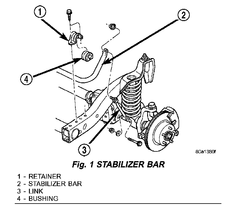 6. Remove stabilizer bar links at the axle (Fig. 1).