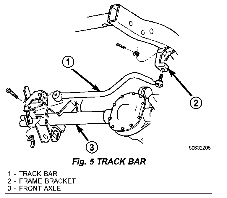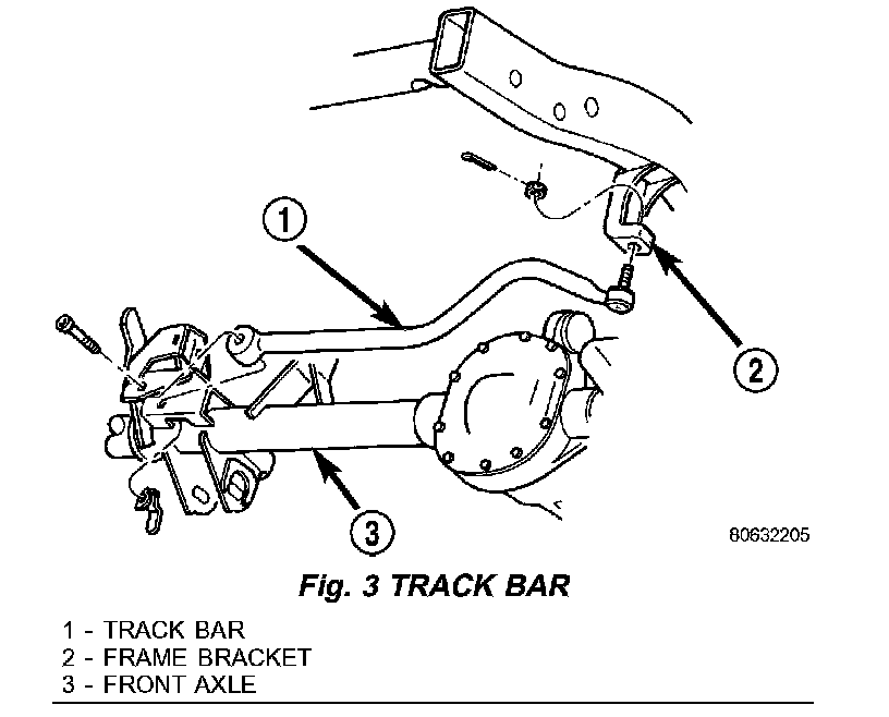 8. Remove track bar from axle bracket (Fig. 3).