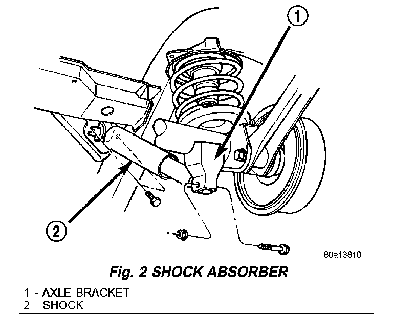 7. Remove shock absorbers from axle bracket (Fig. 2).