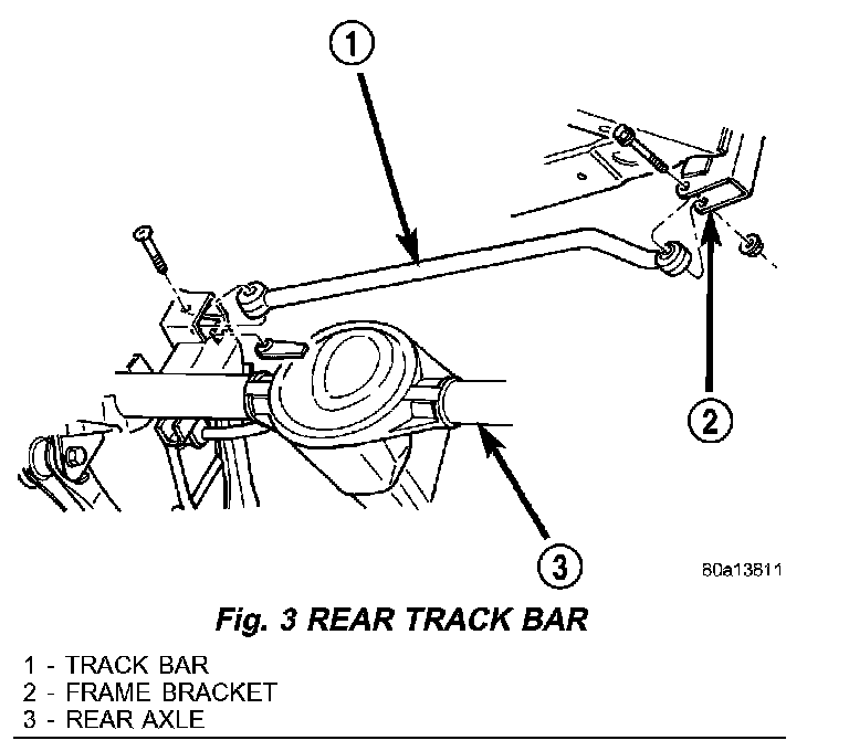 8. Remove track bar from axle bracket (Fig. 3).