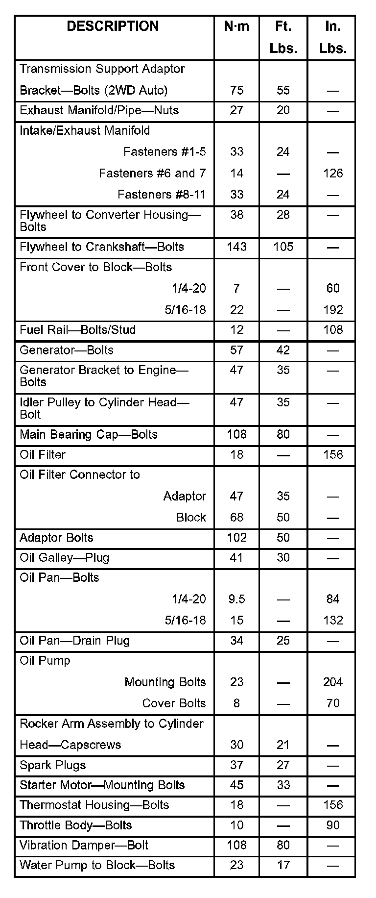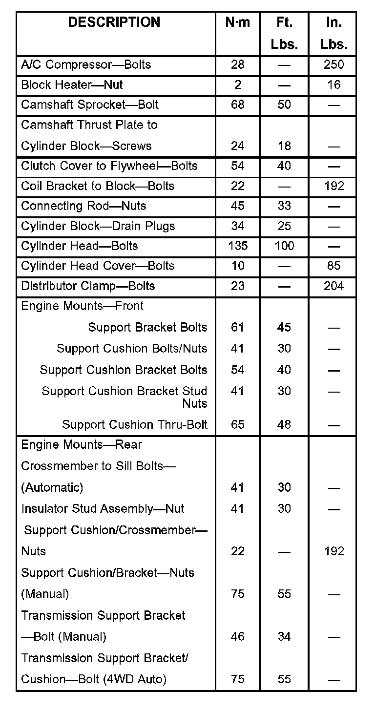 Engine Torque Specifications