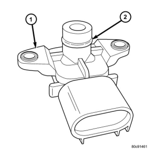The Manifold Absolute Pressure (MAP) sensor is mounted into the front of the intake manifold. An O-ring (2) is used to seal the sensor to the intake manifold.