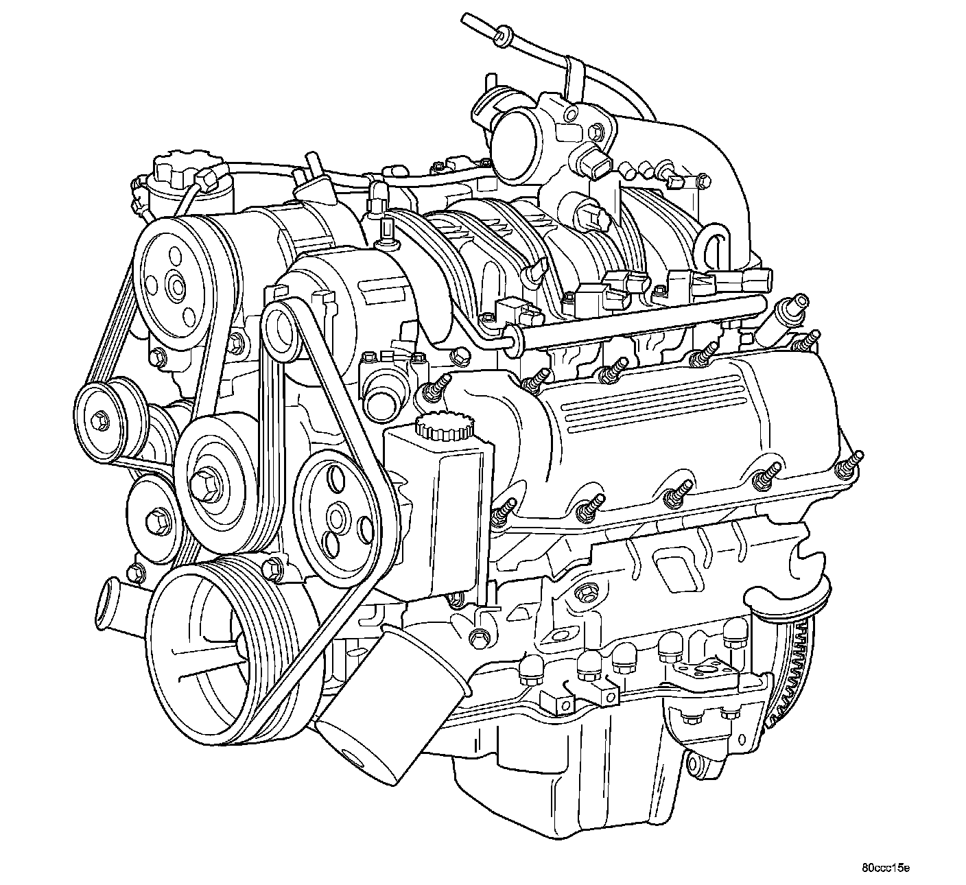 The 3.7 liter (226 CID) six-cylinder engine is an 90° single overhead camshaft engine. The cast iron cylinder block is made up of two different components; the first component is the cylinder bore and upper block, the second component is the bedplate that comprises the lower portion of the cylinder block and houses the lower half of the crankshaft main bearings. The cylinders are numbered from front to rear with the left bank being numbered 1,3, and 5 and the right bank being numbered 2,4, and 6. The firing order is 1-6-5-4-3-2. The engine serial number is located at the right front side of the engine block.