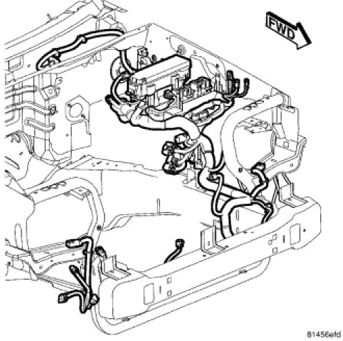 The PDC housing is secured in the engine compartment at three points. Integral mounts on both sides of the PDC housing engage and latch to stanchions that are integral to the molded plastic support bracket. The PDC is integral to the headlamp and dash wire harness, which exits from the bottom of the PDC housing. The PDC housing has a molded plastic cover that includes two integral latches and pivot hooks that snap over a hinge pin on the side of the PDC housing. The PDC cover is easily opened or removed for service access and has a convenient fuse and relay layout map integral to the inside surface of the cover to ensure proper component identification.