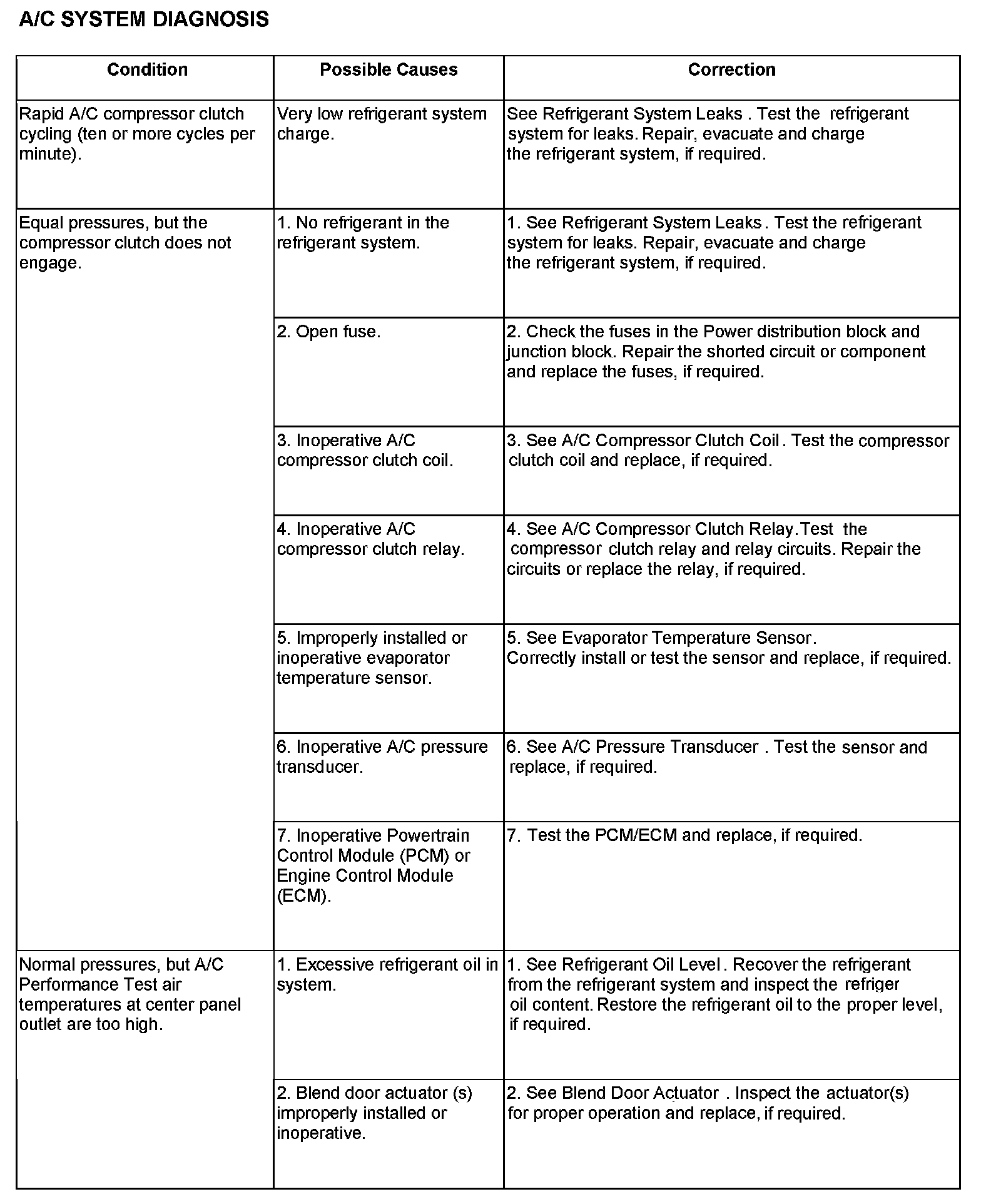 - A/C-heater controls set to Recirculation mode (max-A/C), full cool, panel mode, high blower and with A/C compressor engaged. If the A/C compressor does not engage, see the A/C System Diagnosis chart.