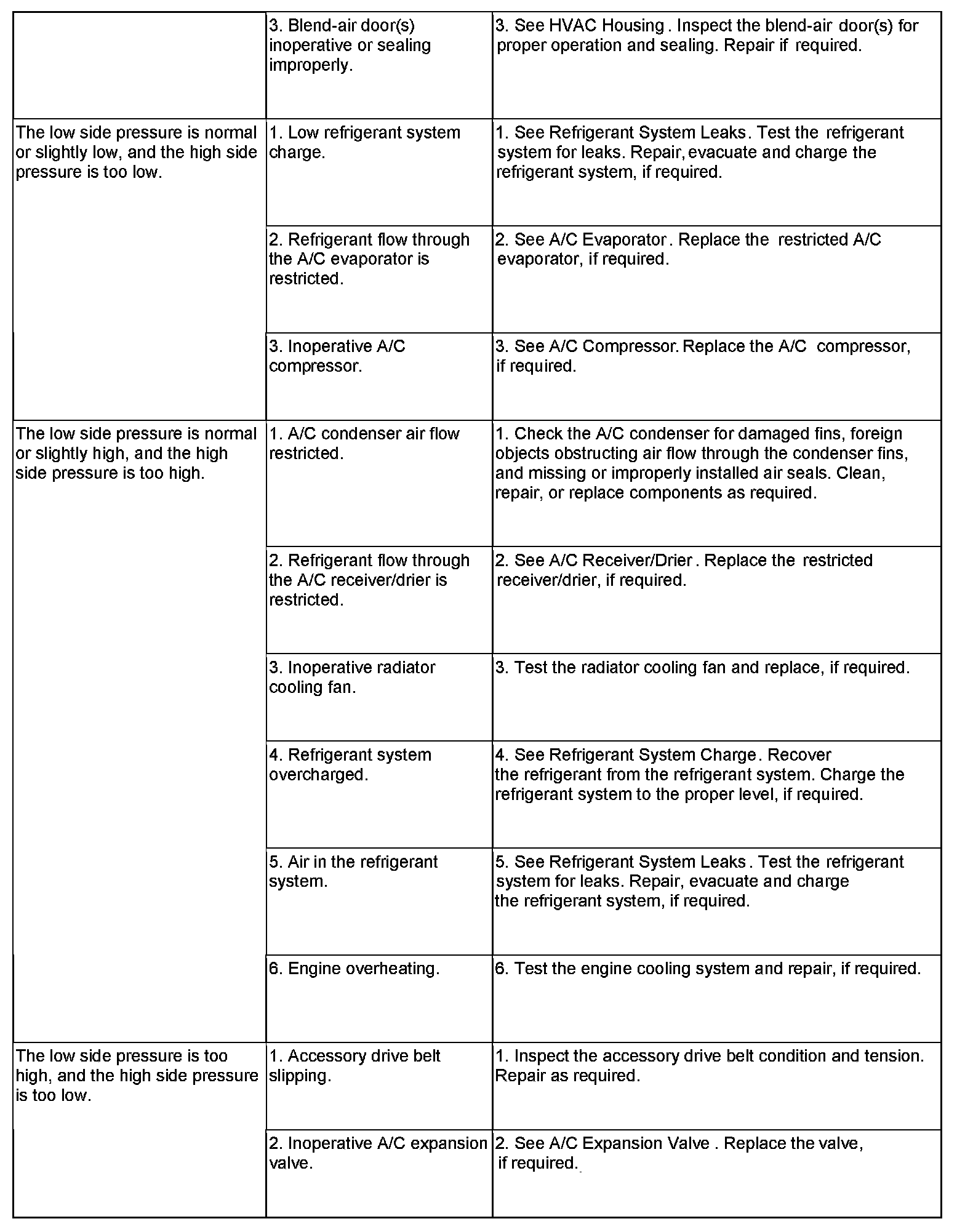See Refrigerant System Leaks. Test the refrigerant system for leaks. Repair, evacuate and charge the refrigerant system, if required.