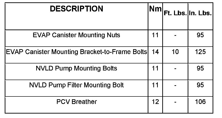 Evaporative Emissions System: Specifications
