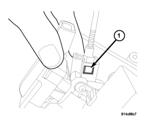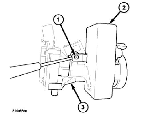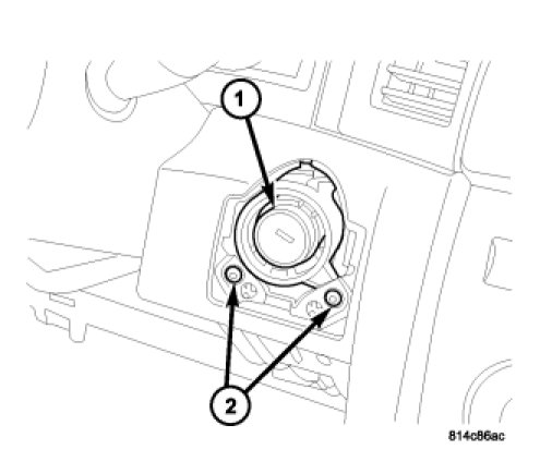 1. Install ignition key into lock cylinder (1). Rotate key to "ON" position (retaining tab on side of lock cylinder (3) can now be depressed).