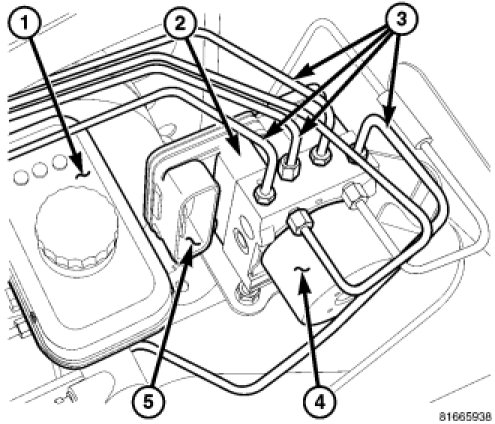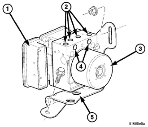 11. Remove the HCU (3) with the bracket (5) from the vehicle.