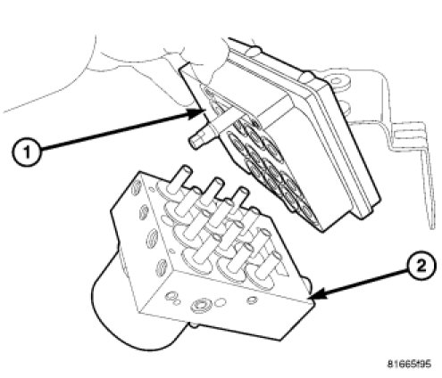 12. Remove the 3 ABM bolts securing the ABM (1) to the HCU (2).