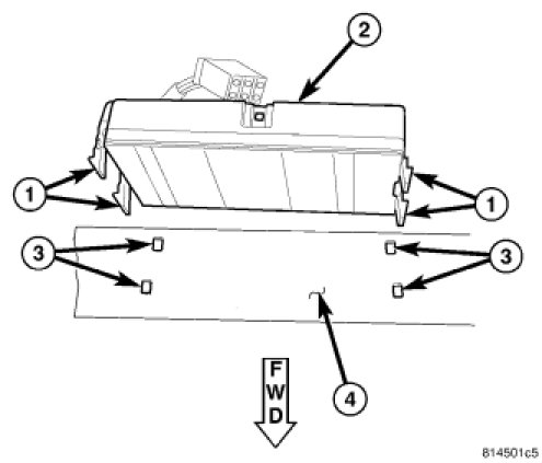 CAUTION: The Heated Seat Module mounting tabs can be damaged during module removal and installation. Use care to properly align tabs to prevent binding that could result in tab breakage.