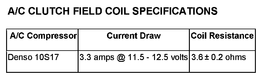 6. Refer to the A/C Clutch Field Coil Specifications chart for the acceptable A/C clutch coil resistance. Specifications apply for a work area temperature of 21° C (70° F).