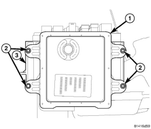 2. Install the four fasteners (2) securing the FCM (1) to the IPM (3).
