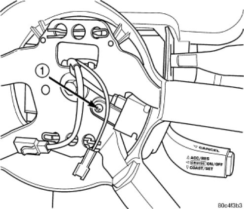 The speed control switch is mounted in the steering wheel and wired through the clock spring device under the airbag module.