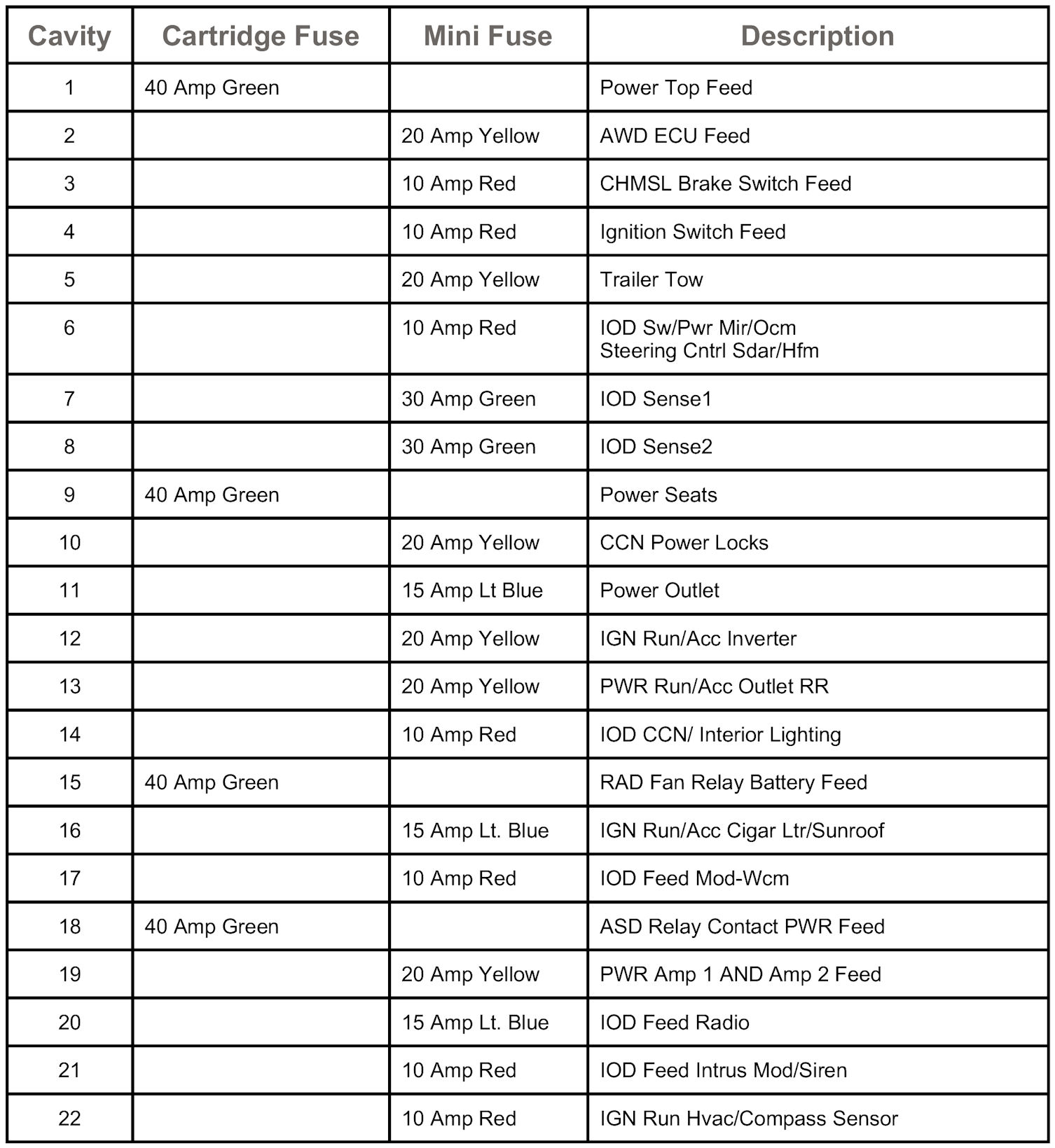 An Integrated Power Module is located in the engine compartment near the air cleaner assembly. This center contains cartridge fuses and mini fuses. A label that identifies each component may be printed on the inside of the cover.