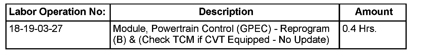 PM/MK Models equipped with a CVT must have the TCM reprogrammed as follows: