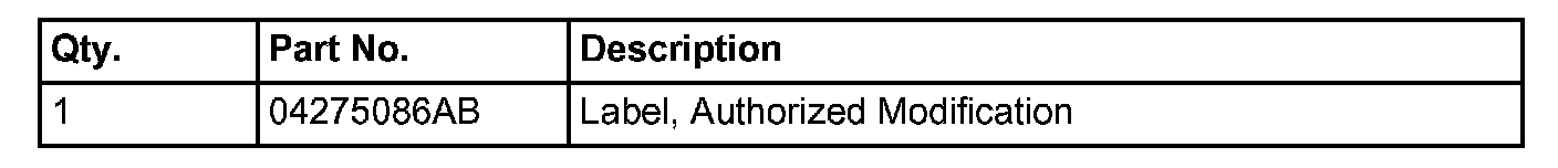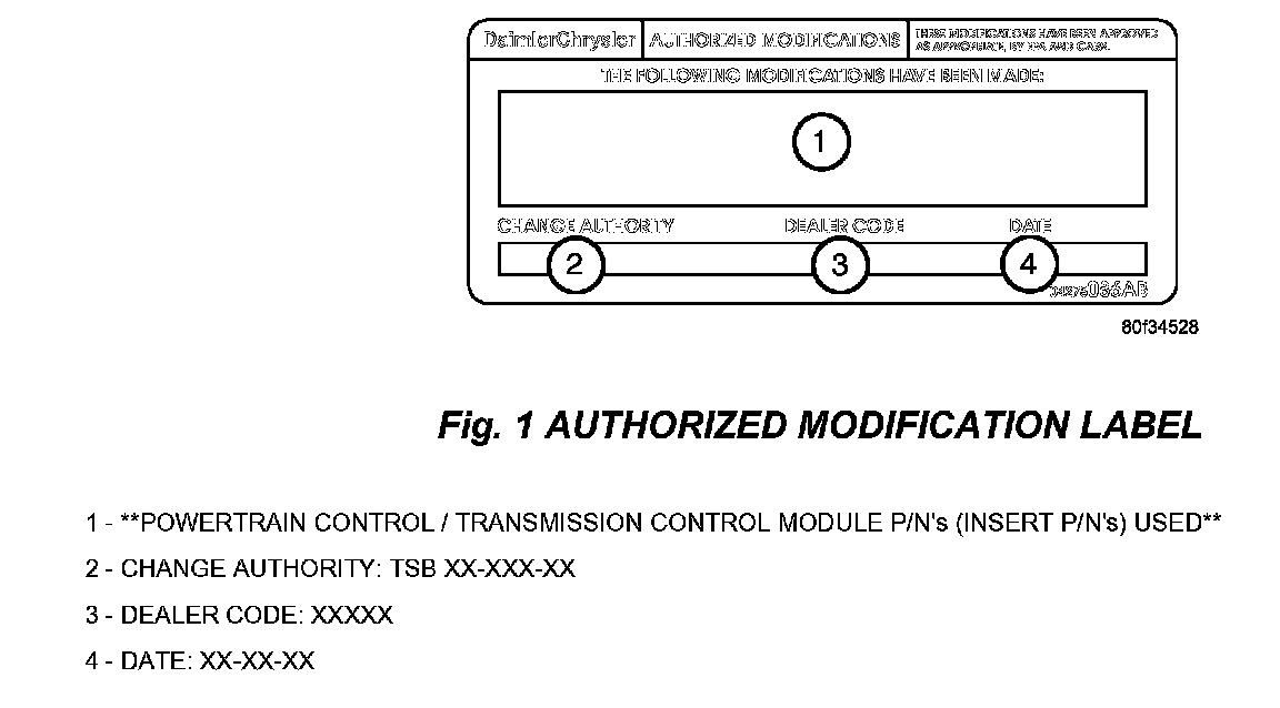 9. Type the necessary information on the "Authorized Modification Label" p/n 04275086AB and attach near the VECI label (Fig. 1).
