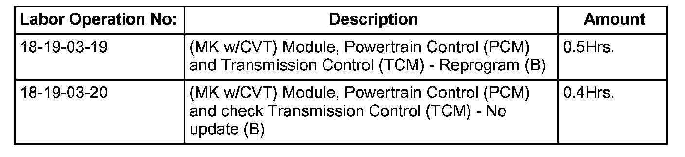 PM/MK Models equipped with a CVT must have the TCM reprogrammed as follows: