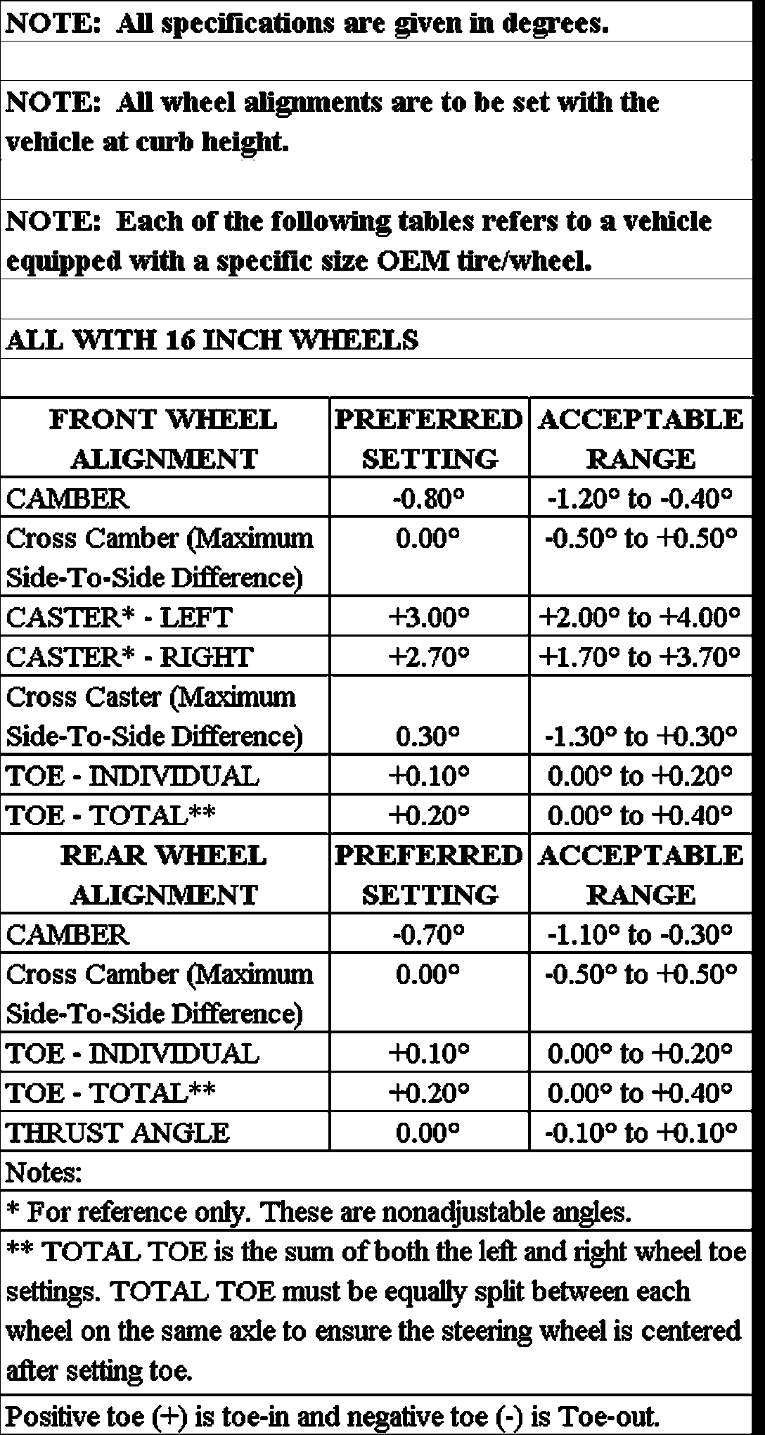 Wheel Alignment Specifications